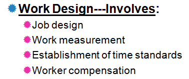 involves specifying the content and method of a job (what who where and how). The objective is to increase the long term productivity, safety, and QWL