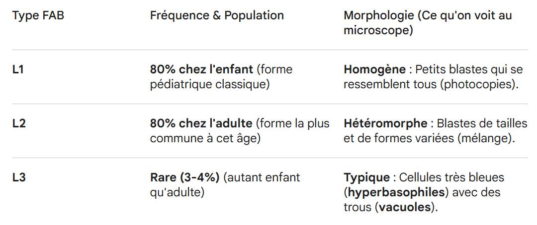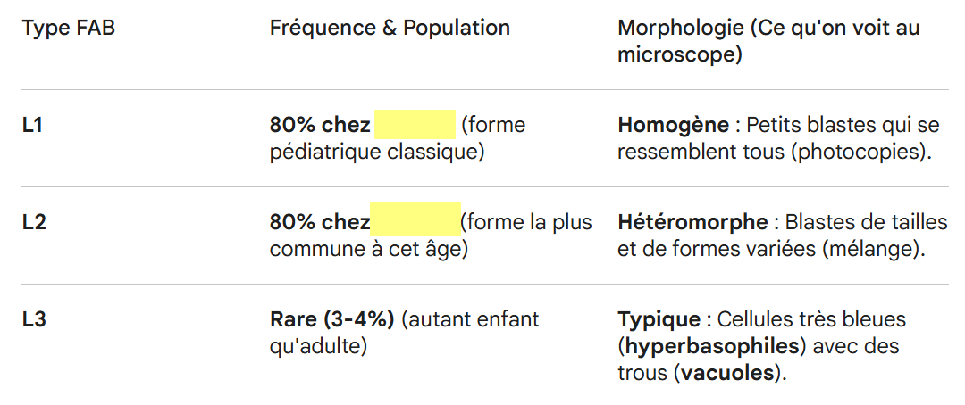 Il s’agit d’une LAL issue de lymphocytes B immatures, ce qui correspond à la majorité des cas de LAL.