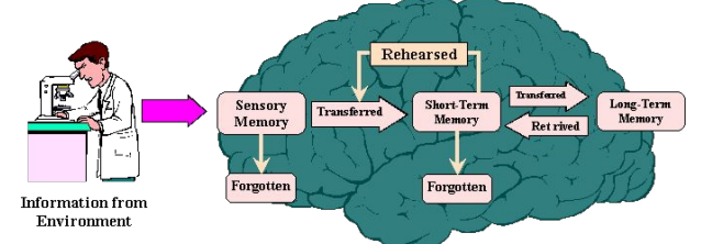 all processes by which sensory input is transfomred, reduced, elaborated, stored, recovered, used even in absence of relevant physical stimuli like hallucinations