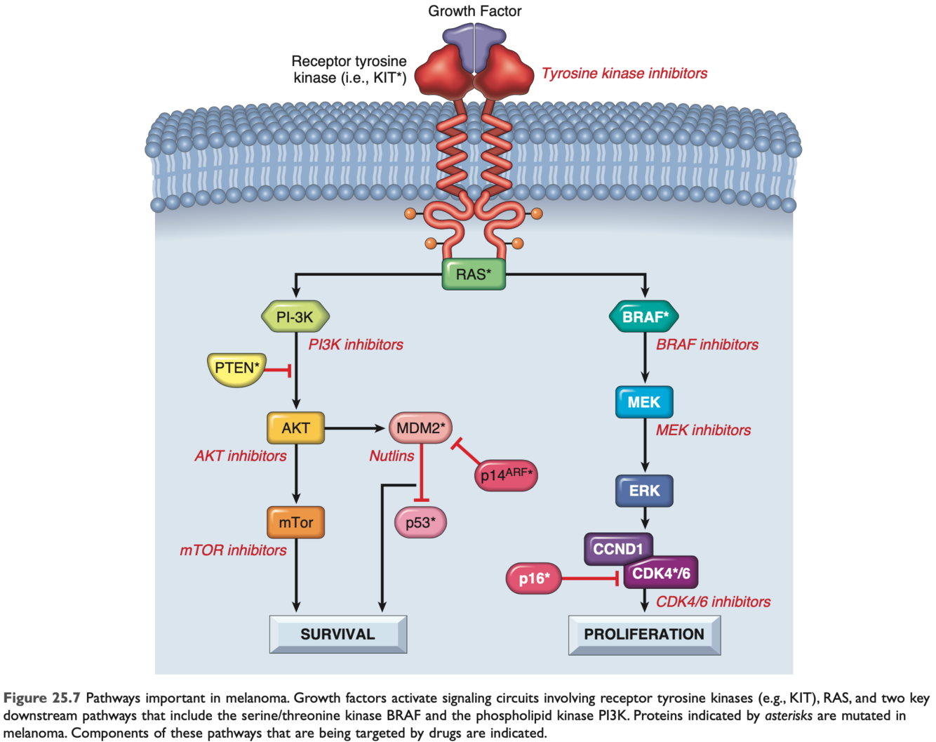 - Le gène plus frequemment muté dans les mélanomes (70%)