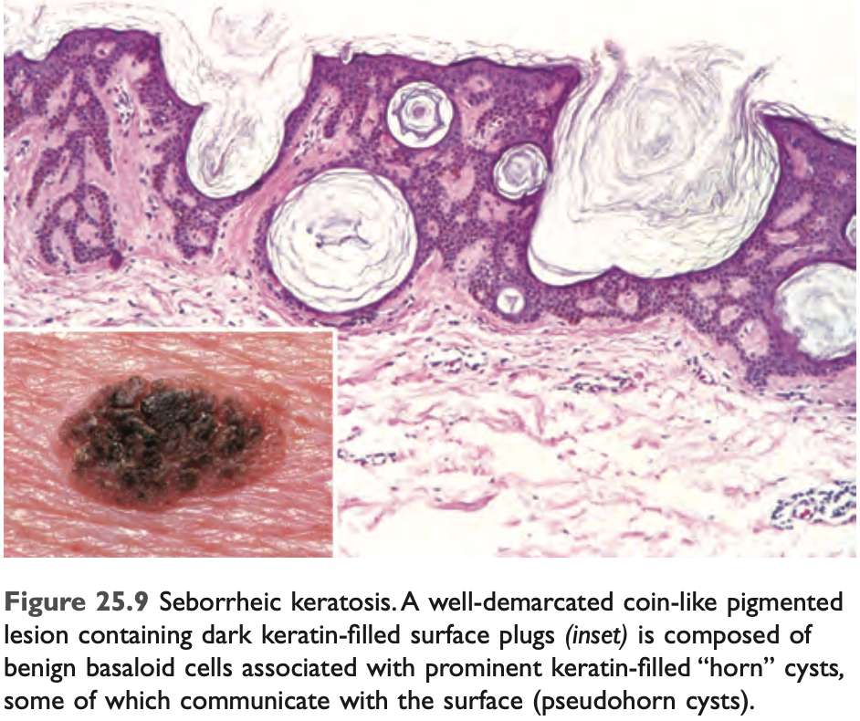 Décrivez l’histologie d’une kératose séborrhéique: (p. 710)