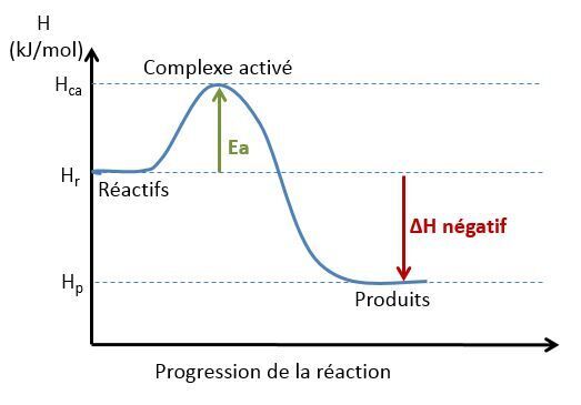 L’énergie est avec les produits ou avec les réactifs lors d’une réaction exothermique?