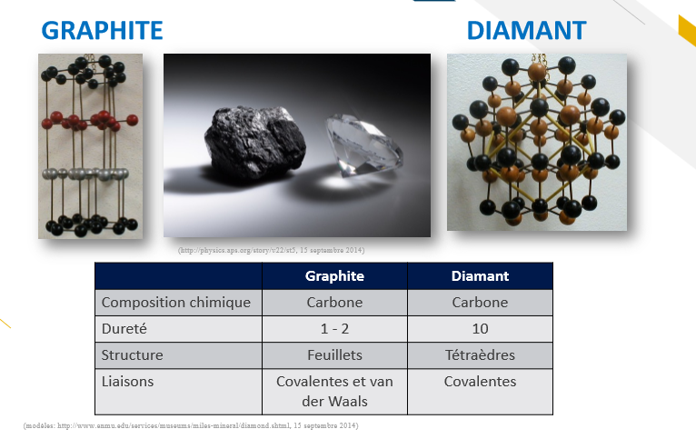 -2 minéraux avec la même composition chimique, mais une structure cristalline différentes (et donc propriétés différentes)