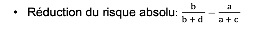 Si différence des AR > 0, réduction du risque absolu (ARR)