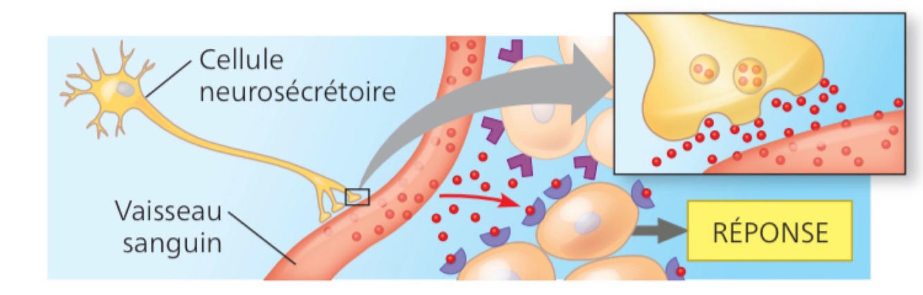 Des neurohormones diffusent dans la circulation sanguine et déclenchent des réponses dans le corps.