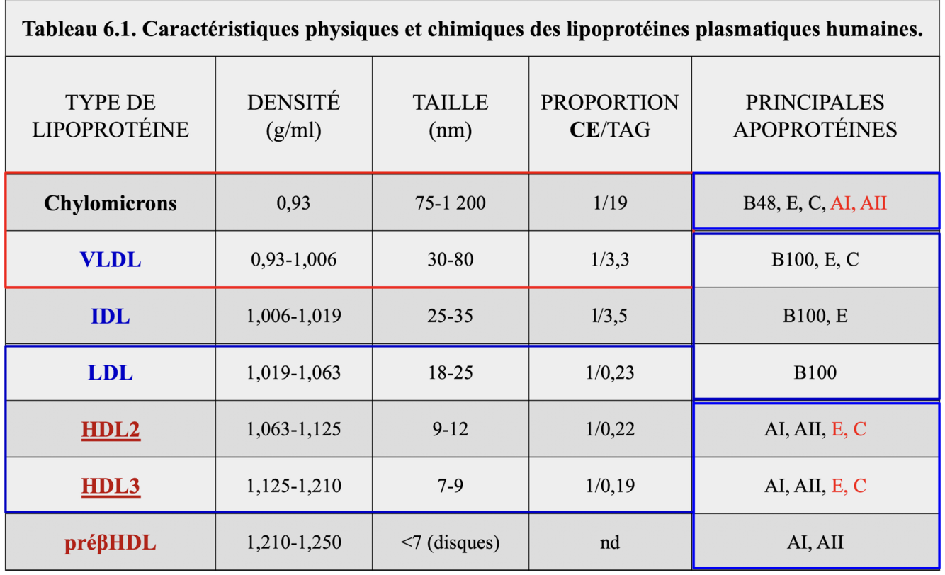 transportent principalement les TAG, le cholestérol et les phospholipides d’origine hépatique, mais également, exogène (chylomicrons).