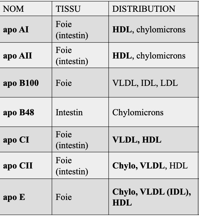 – L’apo? est L’apoprotéine principale des chylomicrons.
