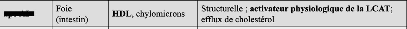 – ApoAI est critique pour la captation de cholestérol (voir LCAT), première étape de maturation des pré-bHDL.