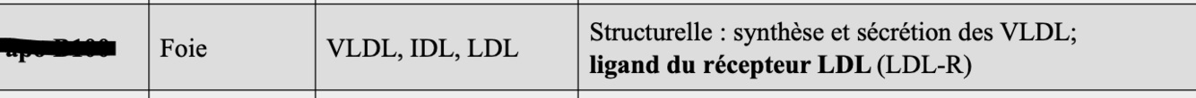 – L’apoB100 est la principale apoprotéine des VLDL et acquièrent à partir des HDL, les apoprotéines apoE et apoC (I et II).