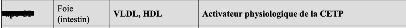– Les HDL3 transfèrent les apoprotéines apoE et apoC (I et II) vers les chylomicrons et les VLDL.