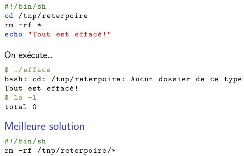 Tout fichier texte lisible et exécutable (r-x) peut être exécuté