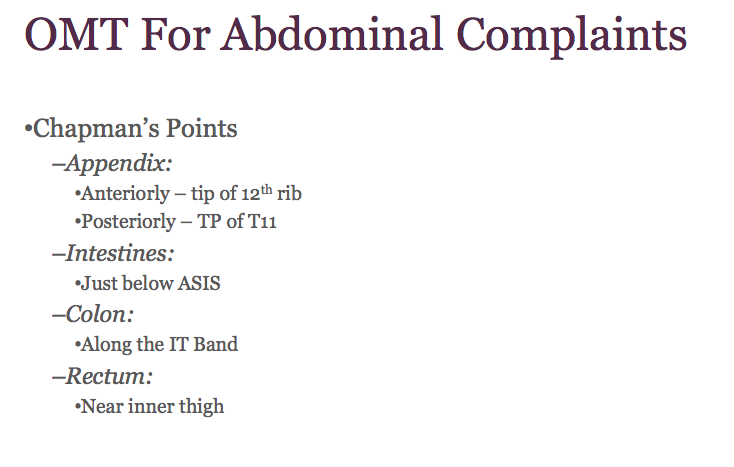 Anterior and posterior Chapman’s points for the Appendix?