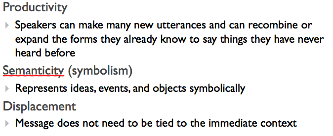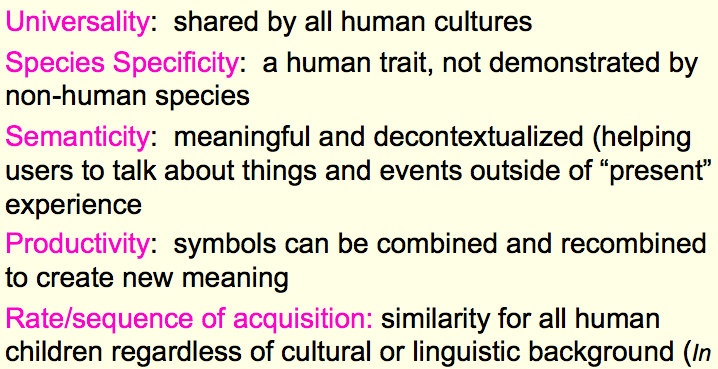 What are the 3 main charateristics of language?