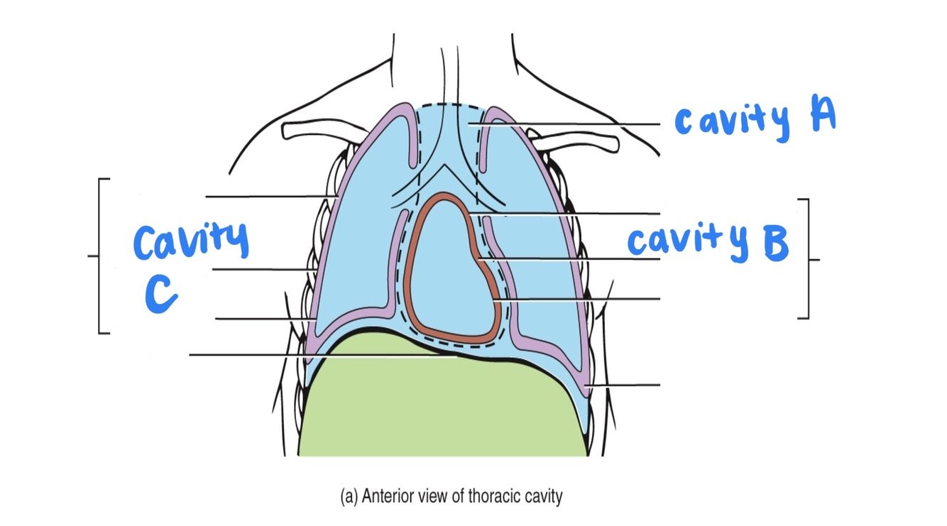 Cavity C: pleural cavity - potential space of pleura that surrounds the lungs