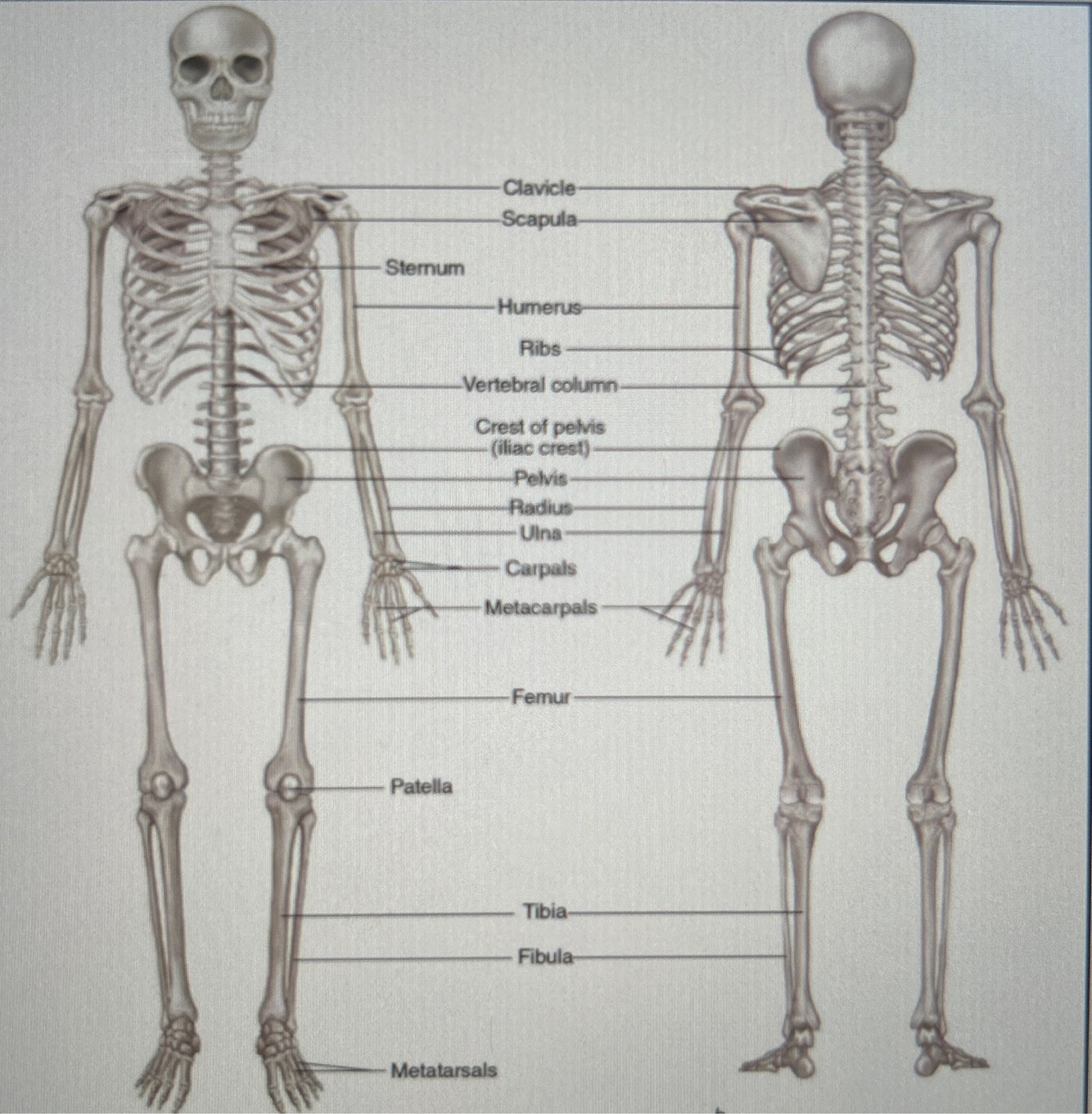 Skull, vertebral column (C1 through coccyx), ribs and sternum
