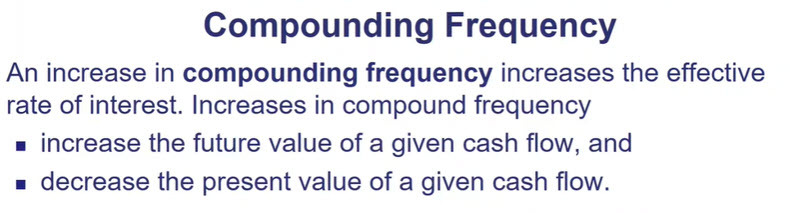 Increase in Compounding Freq increases and decreases what