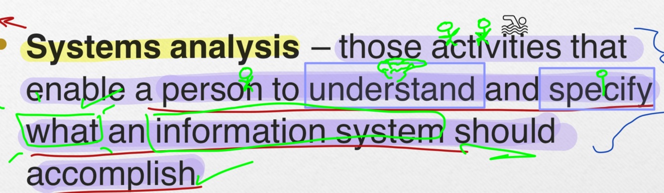 Systems analysis are those activities that enable a person to ………… and ……….. what an information system should accomplish