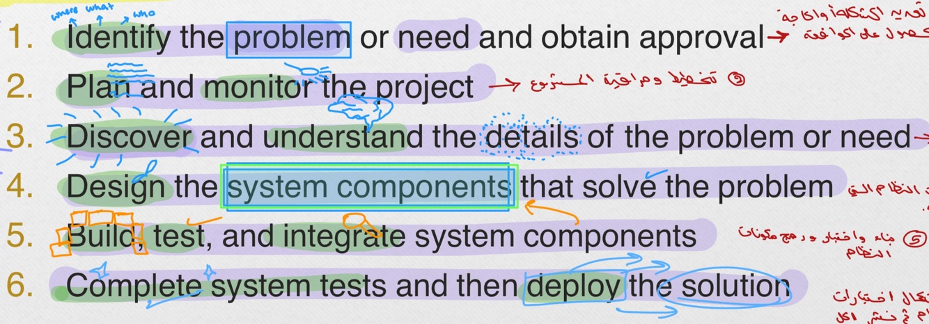 The process consisting of all activities required to build🧱, launch🚀, and maintain 🫳🏼an information system: (hint: there six)