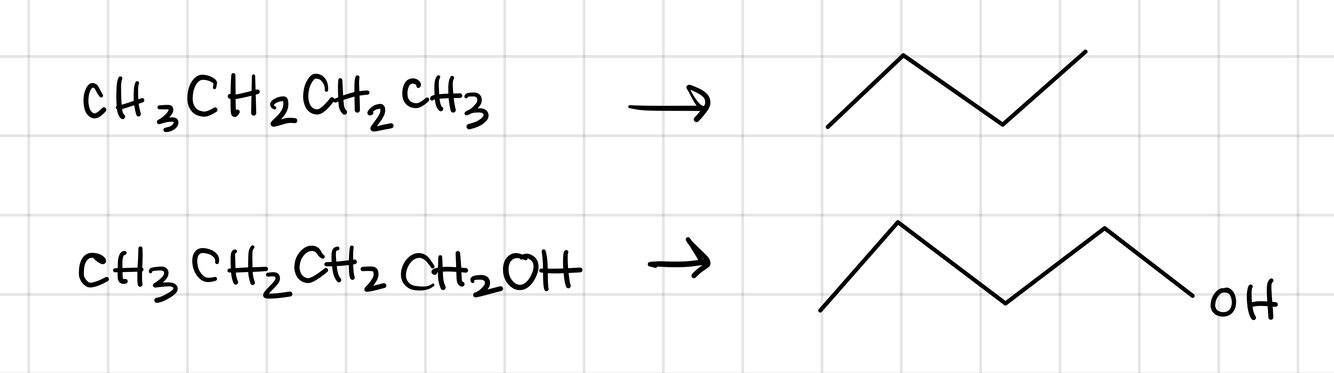 Lewis structures in which many (or all) covalent bonds and electron pairs are omitted.