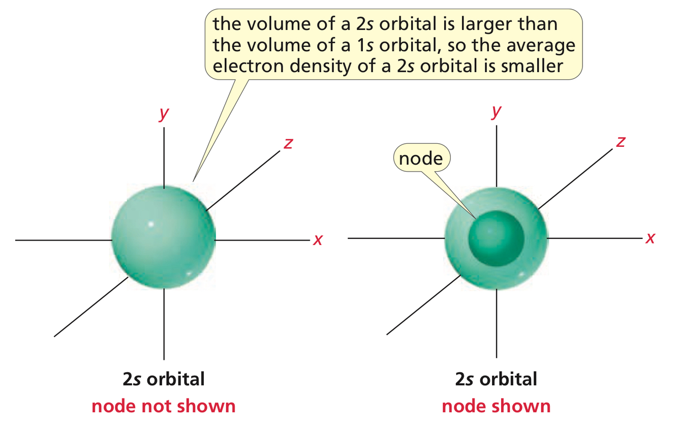 *Nodes occur because electrons have both particle-like and wave-like properties. A node is a consequence of the wave-like properties of an electron.