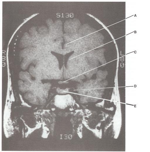 weighted magnetic resonance image (MRI) of the coronal section of the brain.