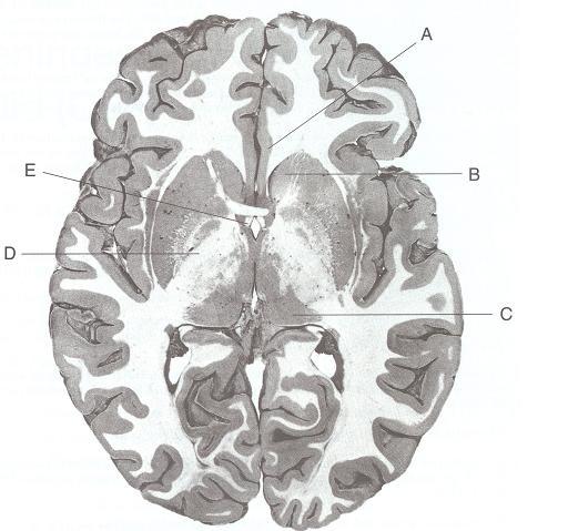 13-D. The posterior limb of the internal capsule lies between the lentiform nucleus and the thal-