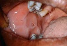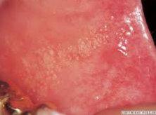 Leukodemia. If you strech the cheek the white lines will disappear. They will also not rub off.