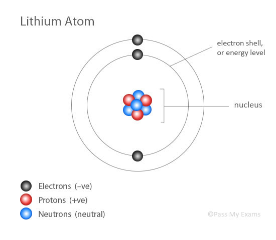 Small positively charged nucleus, negative electrons move in fixed orbits (shells) around the nucleus.