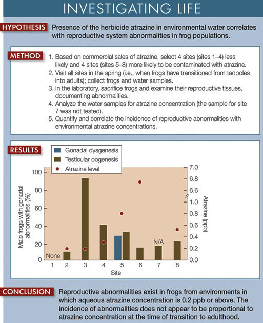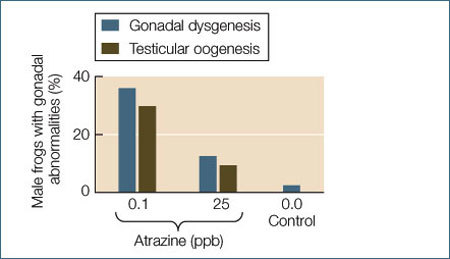 From the graph, you observe that the higher atrazine concentration does not result in a higher rate of abnormality occurrence. You therefore know that