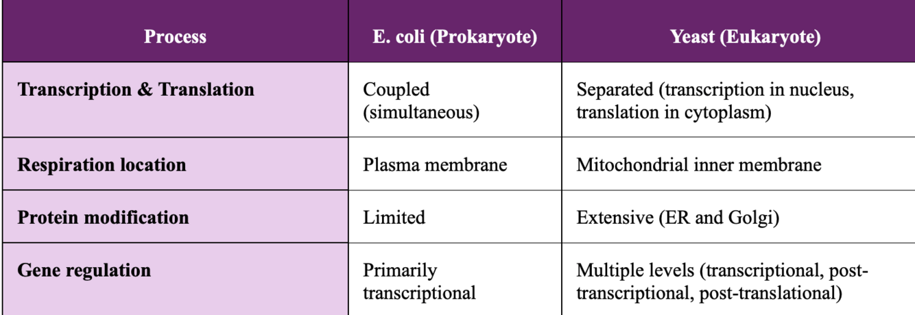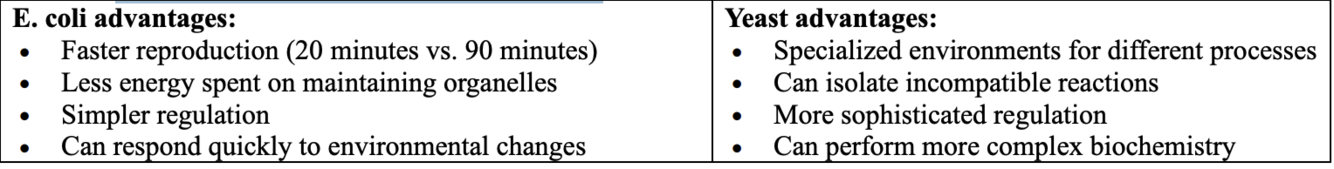 Scenario: Compare how E. coli (a bacterium) and Saccharomyces cerevisiae (baker’s yeast)