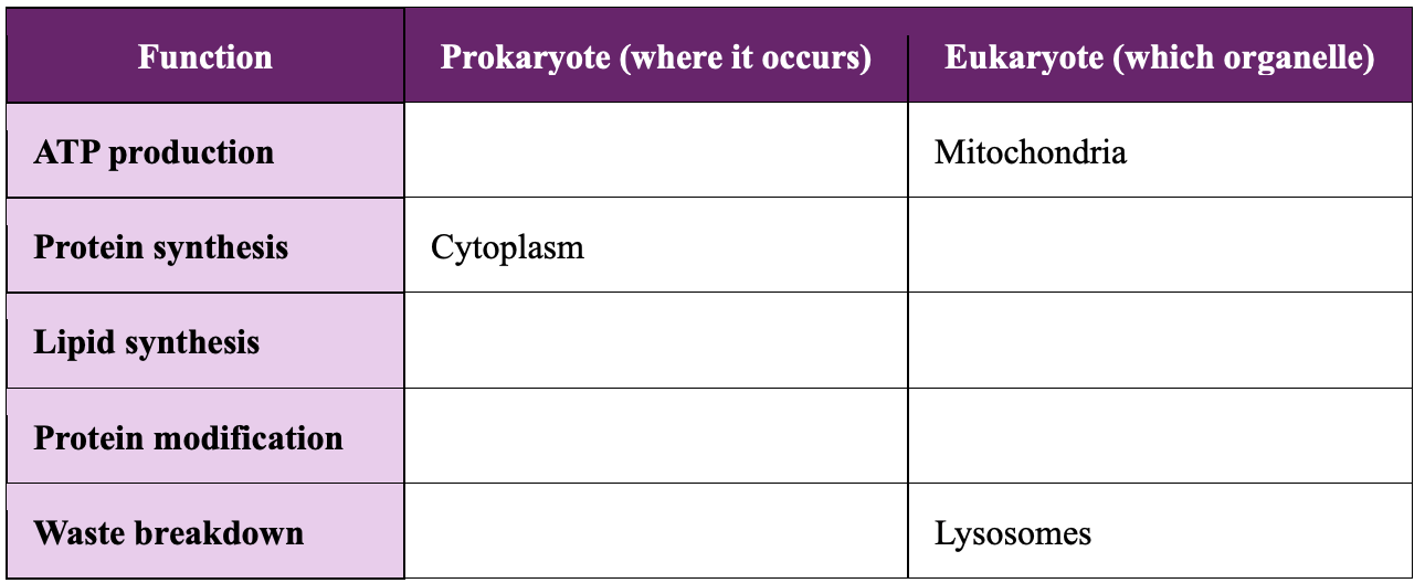 Background: Eukaryotic cells have specialized organelles (mitochondria, ER, Golgi, lysosomes,
