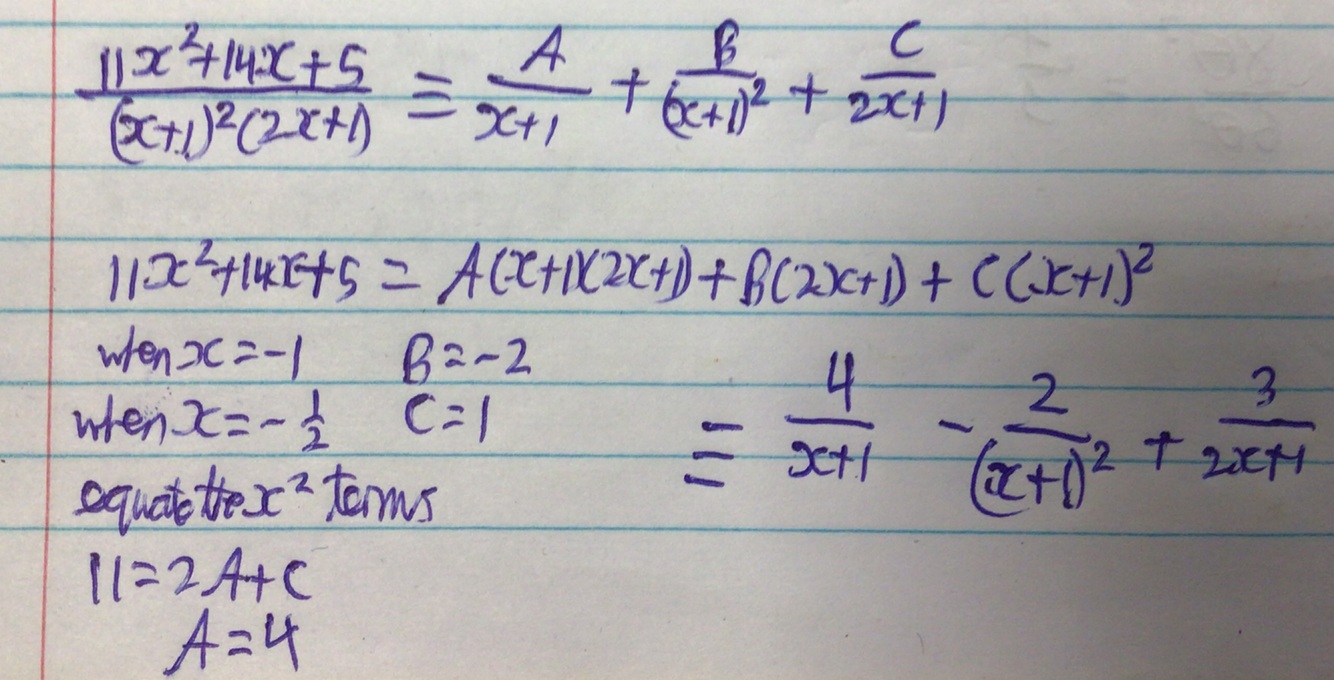 2) the auestion will often say write so and so in the form: . Make sure to give the answer in that form not just stating A=2 and B=-1