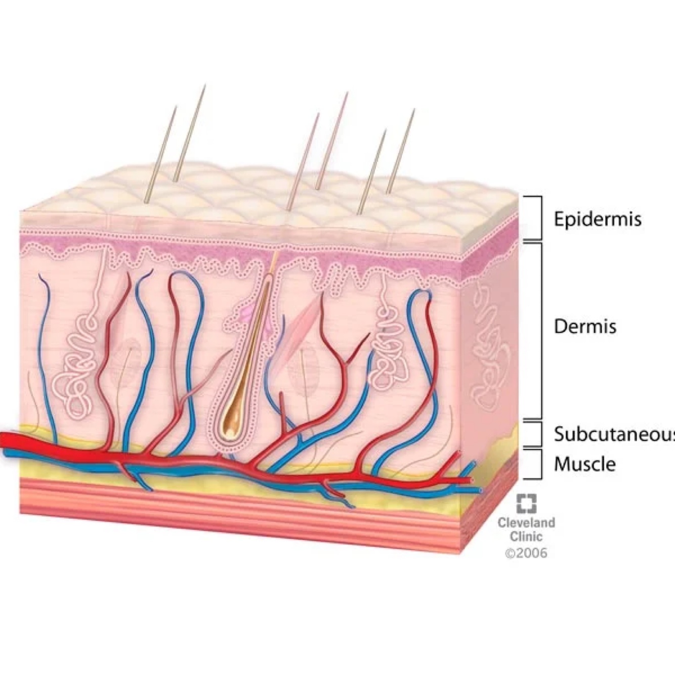 Components: epidermis, dermis, accessory structures (hair, nails, glands, sensory endings).