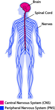 Components: Central (brain and spinal cord) and peripheral (motor and sensory nerves) nervous systems.