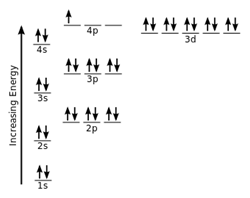 1s^2, 2s^2, 2p^6, 3s^2, 3p^6, 3d^10, 4s^2, 4p^1
