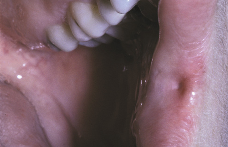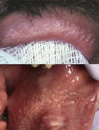 fordyce’s granules of the upper lip (top picture) and buccal mucosa (lower picture)