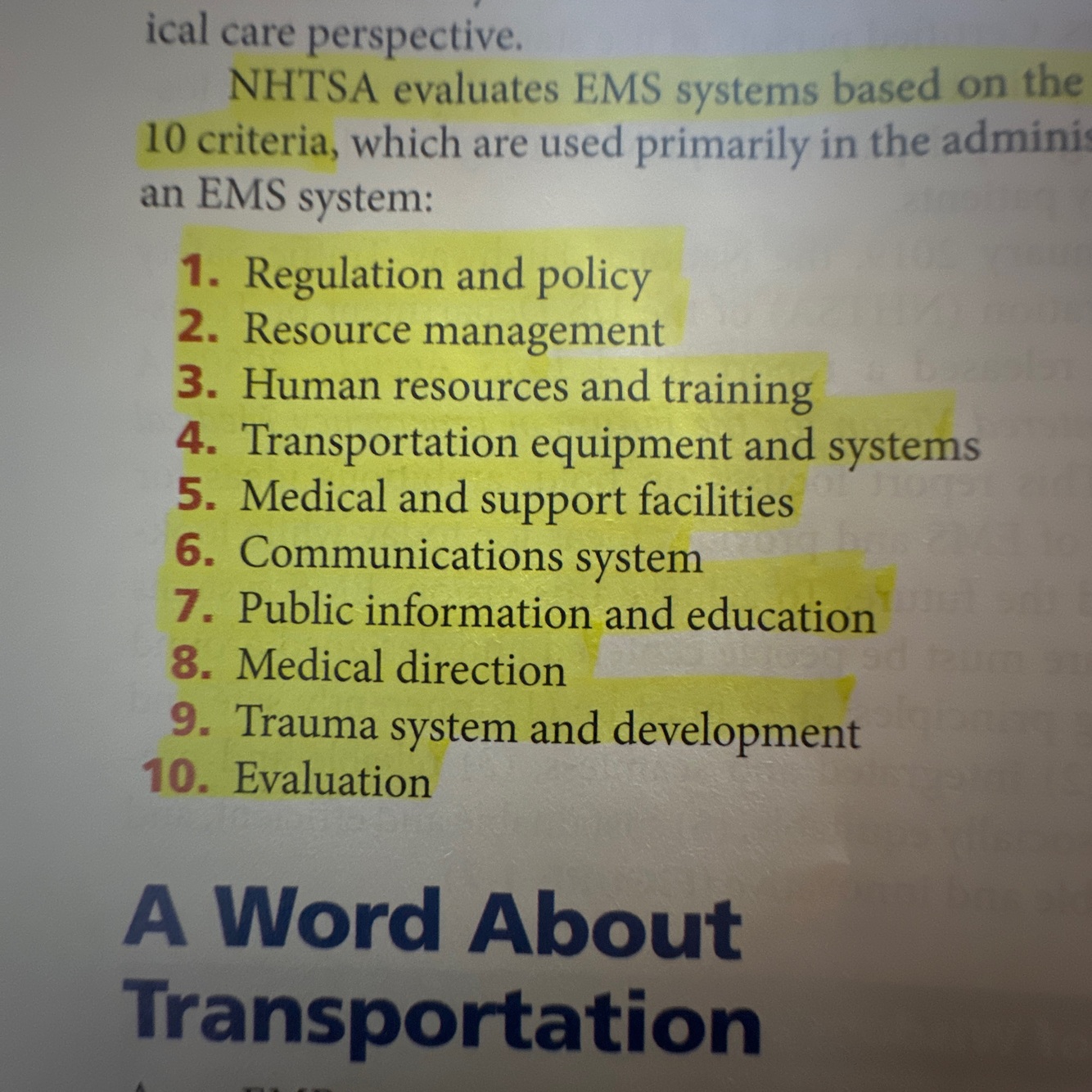 nhtsa evaluation ems based on what