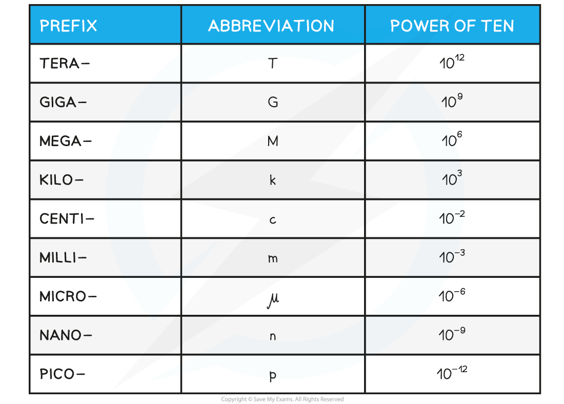 SI units table