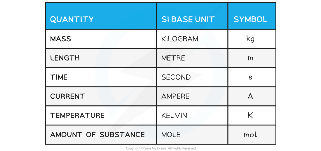 SI units table