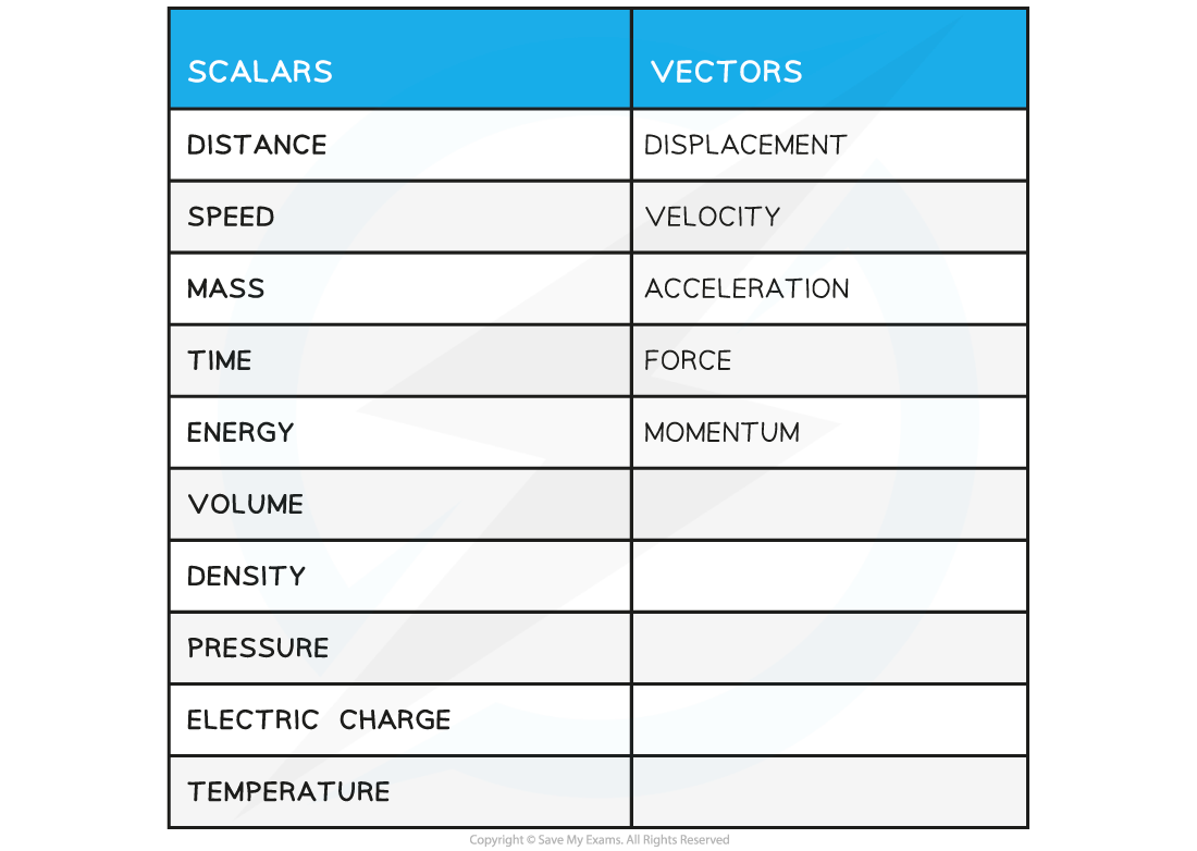 Scalars and Vectors Table