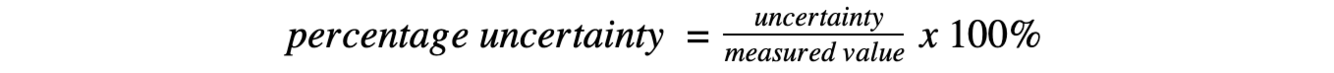 • Percentage Uncertainty: where uncertainty is given as a percentage of the measurement
