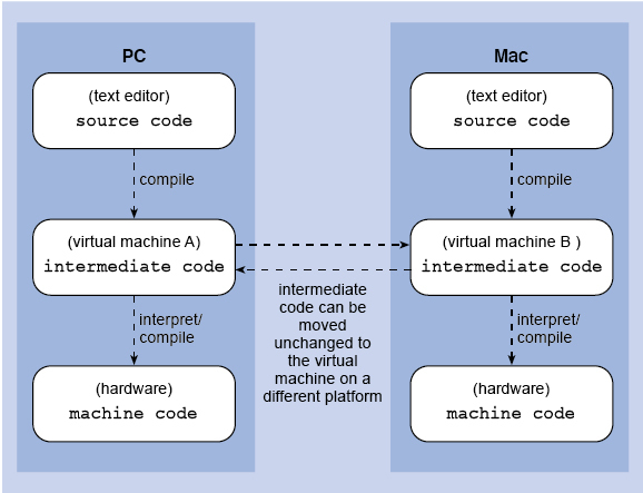 by using these the bytcode can be ran on any type of machine as long that machine has the correct virtual machine installed on it