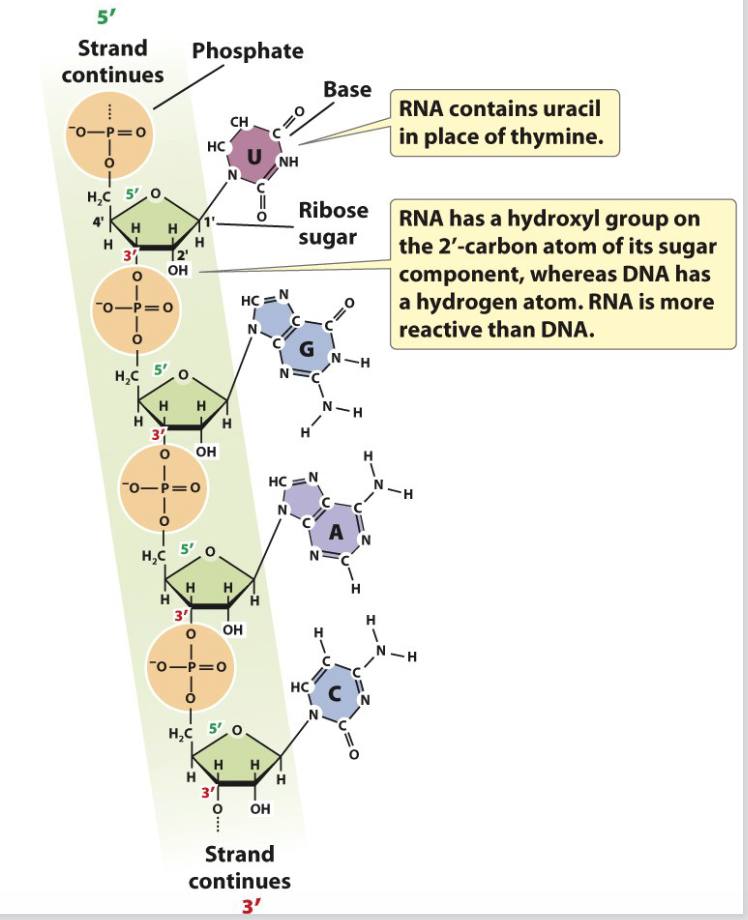 1. Contains uracil, not thymine