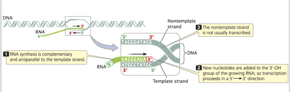 What is transcription? What is the direction of transcription?