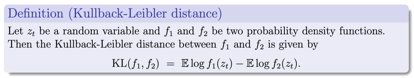 What is the definition of the Kullback-Leibler distance