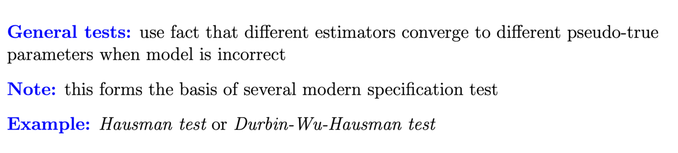 What are some tests to test if your model is correctly specified? On which idea is this based?