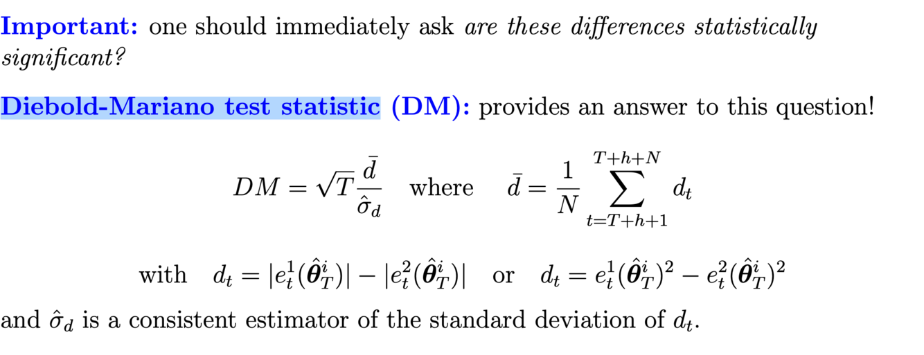 What is the main idea behind the Diebold-Mariano test statistic? What is the statistic?