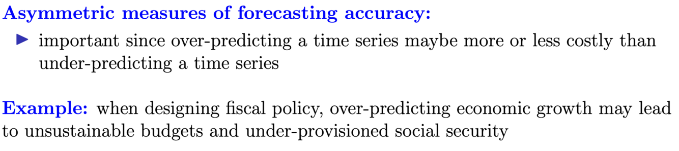Why do you not always want to have a symmetric measure of analyzing forecasting accuracy?