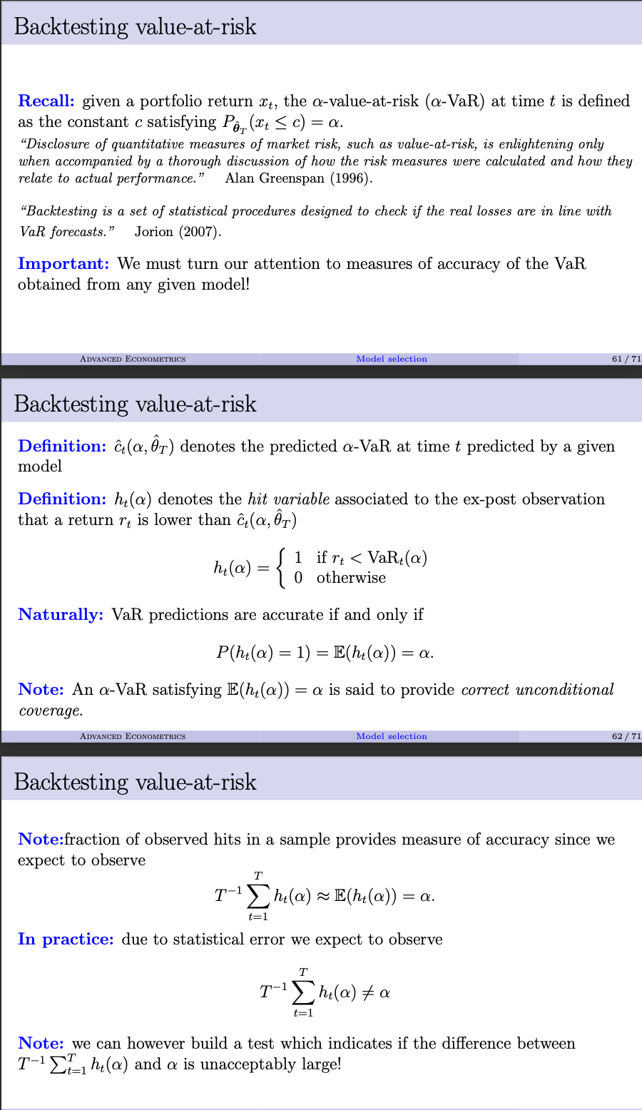 How can you backtest VaR?