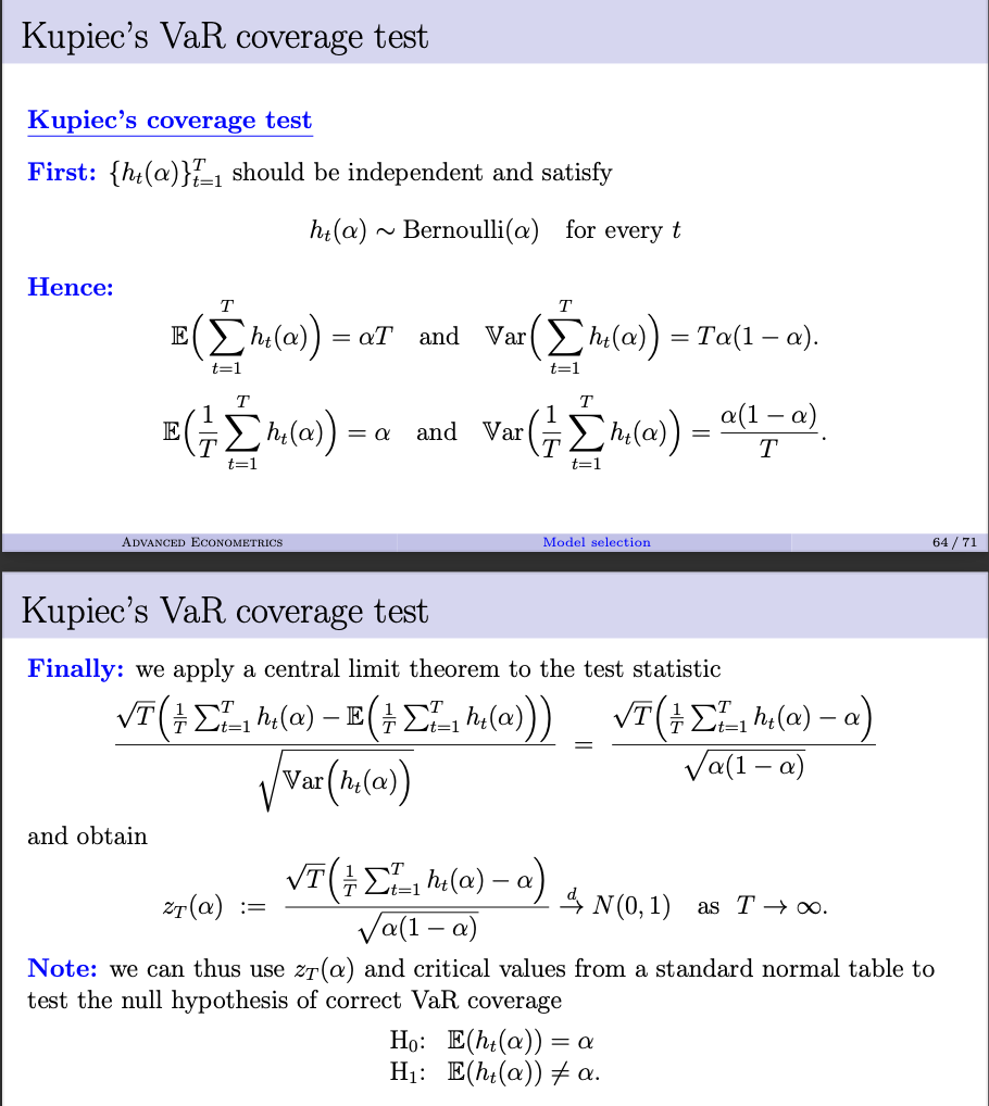 What is the Kupiec’s VaR coverage test?